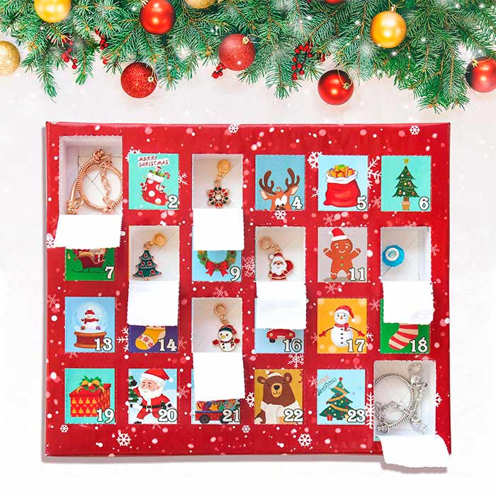 Adventski kalendar vam omogućuje da svaki dan otvorite novi prozorčić, skrivajući slatki privjesak s božićnom tematikom!
